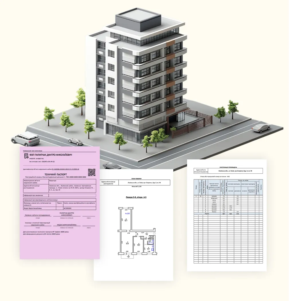 Оформимо офіційний технічний паспорт швидко та без черг. Сертифіковані інженери, договір і гарантія прийняття документів у нотаріусів та державних органах.