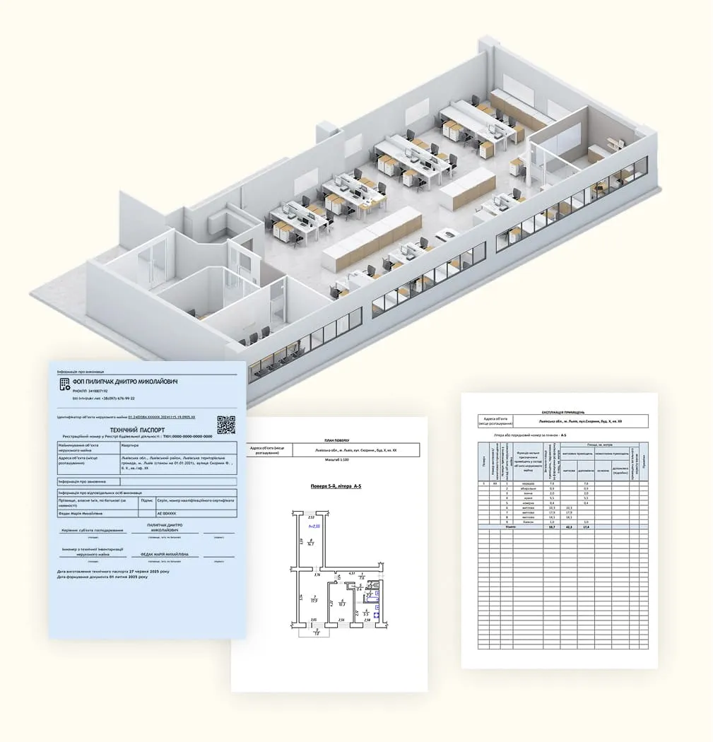 Оформимо офіційний технічний паспорт швидко та без черг. Сертифіковані інженери, договір і гарантія прийняття документів у нотаріусів та державних органах.